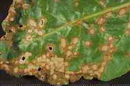 بقع جلدية اللون ذات هاله أقل دكانه ينتشر فى ظروف الجو البارد الرطب وتشبه أعراضه أعراض الإصابة بمرض تبقع الأوراق السركسبورى.